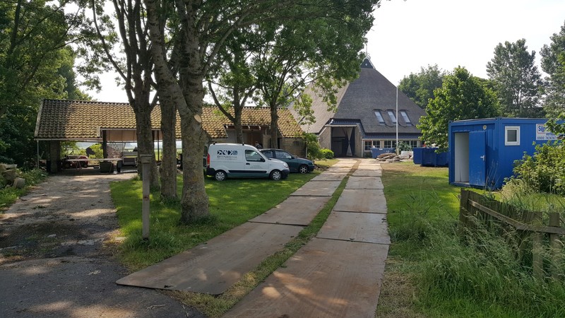 In mei 2018  is  opgestart met de grootschalige verbouw van een woonboerderij te Koudum. Eerst zijn alle voorzetwanden en vloeren er uitgebroken door loonbedrijf Attema te Heeg. Daarna onder de vloeren dieper uitgraven en alles voorzien van een nieuwe betonnen constructievloeren; deze aan onderzijde geisoleerd met 100mm PIR. Ook alle buitenwanden zijn voorzien van 100mm PIR isolatie met 120mm dragende Ytong- lijmwanden.  In de deel en grut buthus zijn de volgende ruimtes gerealiseerd ;  3 appartementen met eigen sanitaire hoek, een aparte saunaruimte, entree-tochtportaal + grote gezamenlijke keuken. Daarnaast is het woongedeelte privé volledig gestript en gemoderniseerd + uitgebreid met een grote bijkeuken en badkamer beneden. De vrijstaande carport is volledig gerenoveerd en de naastgelegen berging is ook volledig geïsoleerd en verbouwt tot appartement met keuken en badkamer. Achter het bijgebouw is een zwembad gerealiseerd incl een aparte technische ruimte tegen het bijgebouw.  Uitvoering bouw door Brinksma Langweer, installatiewerk door CBS Sneek