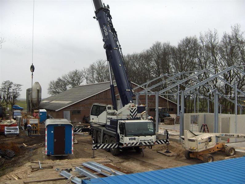 Aan de Soal te Hemelum worden bestaande houten bergingen gesloopt + een bomenrij met sloot omgelegd zodat er een nieuwe jongveestal + werktuigberging kan worden gebouwd. Het stalgedeelte biedt plaats aan 50 stuks jongvee. Voergang in de midden, aan eind voergang een ruime strozolder ( tegen scheidingswand) De achterste 2 spantvakken dienen voor stalling materieel. Deze worden voorzien van 2 stuks schuifdeuren. De beide ruimtes worden dmw een betonwand en damwandprofiel van elkaar gescheiden. Tevens is er een ruimte gehouden voor een kleine werkplaats. Het gebouw wordt geheel onderkelderd. Stalen spanten thermisch verzinkt, rondom prefab betonnen gevelpanelen met baksteenmotief, daarboven damwandprofielplaat met kunststofkozijnen , dak van Eternit golfplaat.