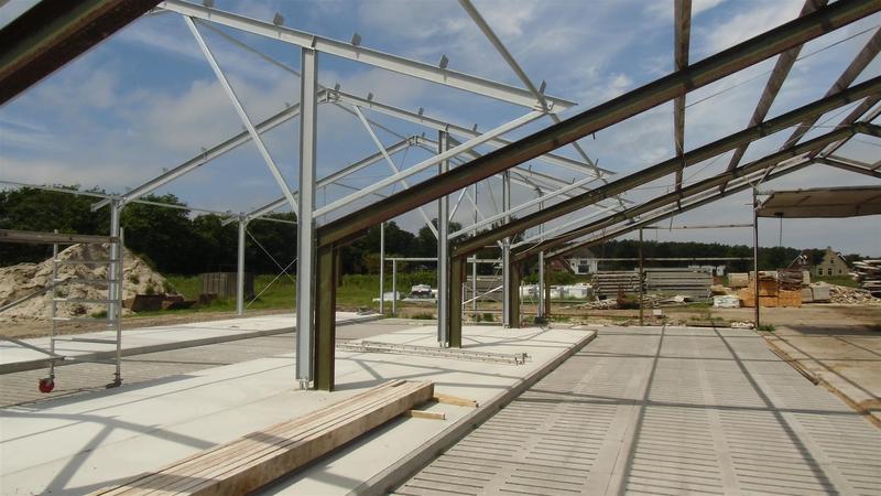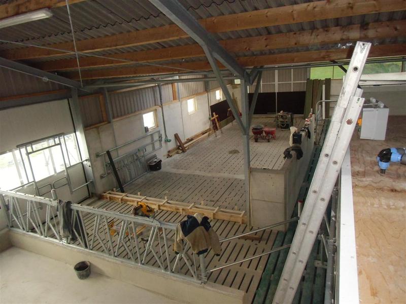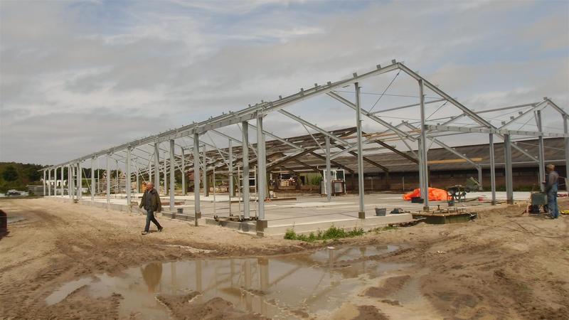 Aan de Dorpsstraat te Hoorn Terschelling is medio maart opgestart met de sloop van de bovenbouw van een voormalige geitenstal. Enkel de spanten en gordingen blijven overeind. De 3 voorste spantvakken (technische ruimtes en voormalige melkstal geiten ) worden geheel incl de funderingen verwijderd. De stal wordt aan de zijkant uitgebreid met een nieuwe kap op betonnen mestkelders en loopgangen + boxdekken. Aan de voorzijde wordt de stal uitgebreid met weer 3 spantvakken voor 2 melkrobots- separatieruimte+ stroboxen + de nodige technische ruimtes. De vloeren worden voorzien/ vervangen voor GroeneVlag(emissie-arme) vloeren. De nieuwe stal bied straks plaats aan ruim 120 stuks melkvee.  De opbouw is van thermisch verzinkte spanten en houten gordingen, Eternit golfplaat en damwand topgevel met zetwerk boeien. Rondom worden de muren nog traditioneel gemetseld. Kopgevels in spouwmuuruitvoering. Binnenwanden van Bia-betonblokken lijmwerk en gestucadoord. Buitenkozijnen en ramen van kunststof. Schuifdeuren aan voorgevel zgn AV-40-deuren ( sandwich paneel met glassectie)