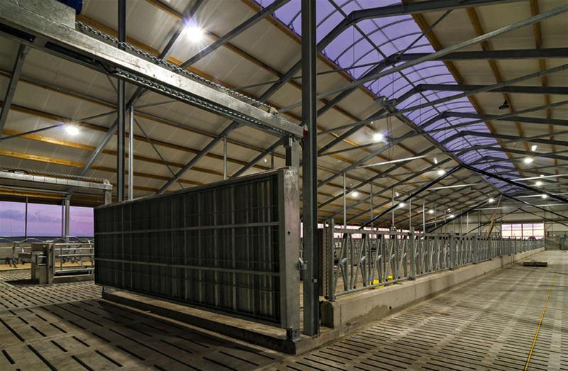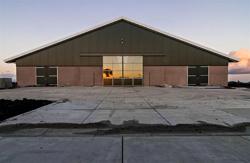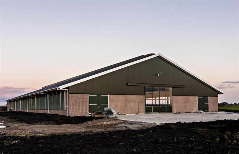 Aan de Swettepoelsterdyk is begin april opgestart met het verlengen van een ligboxenstal met 70m1 ( en 30m1 breed) De stal is aan beide zijden ruim 3m1 breder als de bestaande zijkant. ook de nok ligt ruim 3 m1 hoger. Deze uitbreiding biedt plaats aan ruim 200 stuks melkvee. De stal is volledig onderkelderd. Loopgang voorzien van Veld-V- Eco-vloer en er worden hoofdzakelijk prefab boxdekken toegepast. Bovenbouw van thermisch verzinkte spanten h.o.h. 4.60 m1 en houten gordingen met een dakplaat sandwich (golf) paneel. De nok wordt voorzien van een brede Ellips-licht-ventilatienok. Rondom wanden van prefab beton met baksteenmotief. Topgevels met sandwichpaneel bekleed en zetwerk windveren. Grote schuifdeur bij voergang van zgn BGS-deuren ( sandwich borstwering met rest glas naar boven)