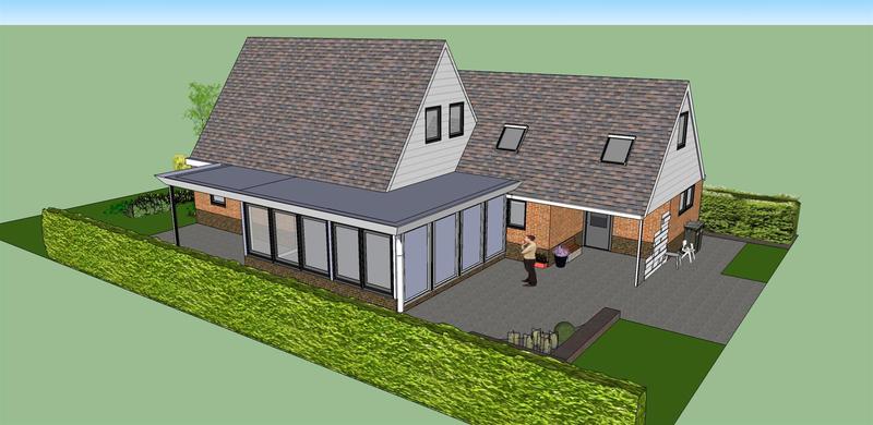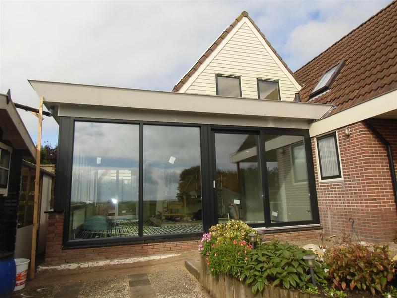 Bij de fam. Terpstra aan de Turfdyk te Gaastmeer is een flinke uitbouw gerealiseerd aan de woning. De woonkeuken is met liefst 25 m2 vergroot. Rondom kunststof puien met HR ++ zonwerend en warmteregulerende beglazing. Achtergevel voorzien van een ruime schuifpui naar de achtertuin en aan de voorgevel een schuifpui naar het overdekt terras. Aan de zijgevel een metselwerk borstwering van ca 50 cm hoog. Fundering voorzien van stalen buispalen en een in het werk gestorte fundering en beganegrondvloer op zandbed (op 150 mm PIR -isolatie) Betimmeringen en boeien rondom van Uniprime exterieur stroken. De bestaande topgevel + dak is opgevangen met een staalconstructie. Stalen kolommen in de nieuwe zijgevel van de uitbouw die zowel de bestaande verdieping opvangen als wel het nieuwe platte dak en de nieuwe puien.  E.e.a in goed overleg met opdrachtgever, gemeente en constructeur is dit project vergunningsvrij en in eigen beheer uitgevoerd