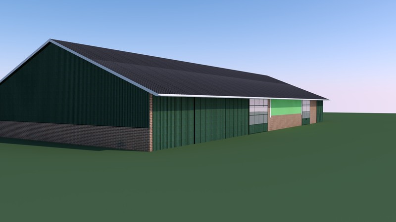 Aan de Westerein te Harich zal een ruime jongveestal met werktuigenberging worden gebouwd. Afmeting ca 26 x 57 m1, inrijhoogte 4.5 m1 nok op 10.5 m1. 7 stuks spantvakken bieden plaats aan ruim 160 stuks jongvee, pinken en vaarzen. De resterende 3 spantvakken zullen worden gebruikt voor stalling werktuigen. Uitvoering geheel onderkelderd met putten 2 m1 diep. Prefab jongvee-grootveeroosters en prefab boxdekken. Voergangen en dekvloer wagenberging afgestort en gevlinderd. Bovenbouw van thermisch verzinkte stalen spanten in vrije overspanning. Tussen de wagen berging en het jongvee een gestorte betonwand met daarboven brandvertragende sandwichpanelen. Rondom prefab betonpanelen in metselwerkmotief kleur vulkaan rood. Topgevels donkergroen stalen damwandprofiel. Dak voorzien van sandwichbeplating met golfmotief. T.p.v. het jongvee wordt er een ventilatiegordijn in de gevels toegepast en een ventilatienok met afdekkap. (tafelnok) Grote schuifdeuren berging en strohok van geisoleerd sandwich kleur donkergroen (AV60) de grote schuifdeuren voor de voergangen en borstwering en voor de rest glassecties ( BGS66 ) In de zuidoostgevel worden nog kunststof ramen toegepast + in de topgevel lichtplaten van meerwandig polycarbonaat (transparant)