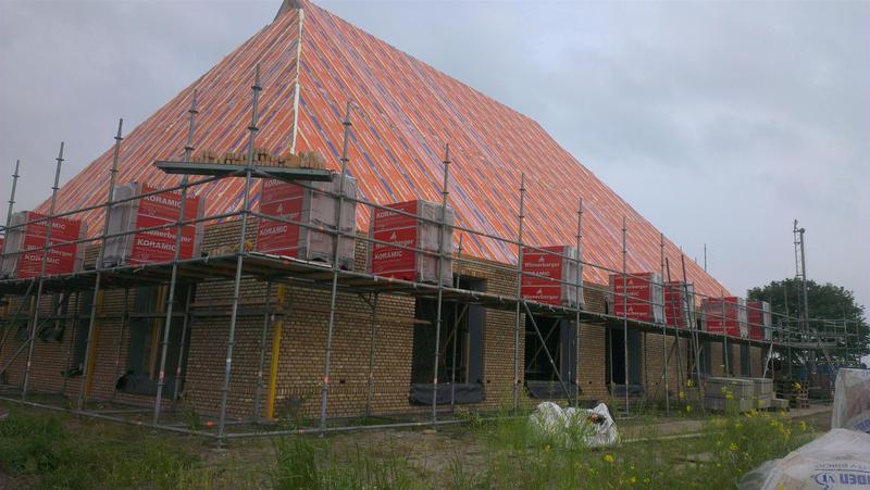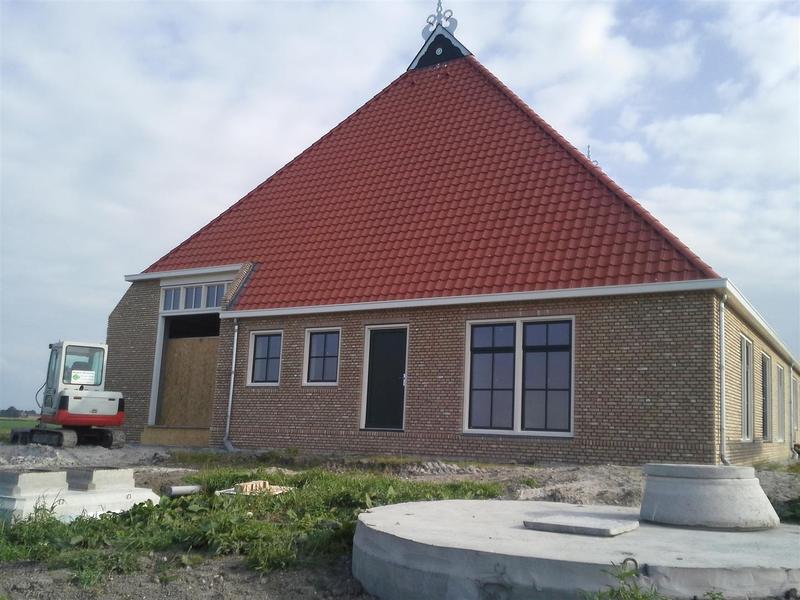 Samen met de fam. De Beer te Hindeloopen mag BBT-Oudega in eigen beheer een complete nieuwe woonboerderij bouwen. Deze komt op de terp aan de Angterperlaan 2 te Parrega. De vorige boerderij was is dusdanige slechte staat dat deze vorig jaar al is gesloopt. BBT-Oudega heeft het oude handgetekende ontwerp volledig gedigitaliseerd en aangepast naar de wensen van de opdrachtgever. Daarna de uitvoeringstekeningen en detaillering verder uitgewerkt zodat hiervan kon worden gewerkt en besteld. Archeologisch onderzoek en gemeentelijk beleid heeft bij dit project veel tijd in beslag genomen, maar uiteindelijk is dinsdag 24 september de 1e paal de grond in gegaan. De boerderij wordt in een traditionele stijl en kleuren opgebouwd met gebruik van moderne bouwmaterialen en zeer hoge isolatiewaarden (Rc 4.5-5). Er zal gebruik worden gemaakt van een warmtepompsysteem en zonnecollectoren. De buitenkozijnen zullen van aluminium worden gemaakt maar dan ook weer in de oude stijl. Entree een ruime vide met aansluitend een lange gang. Naast een ruime woonkamer en eetkeuken komt er een grote tuinkamer langs de zijgevel, incl een kantoor. Beneden 1 slaapkamer met ruime badkamer. Boven 3 ruime slaapkamers met elk een ruime badkamer. Achterste vakken wordt berging en garage. Alle vloeren zowel boven als beneden worden voorzien van vloerverwarming.