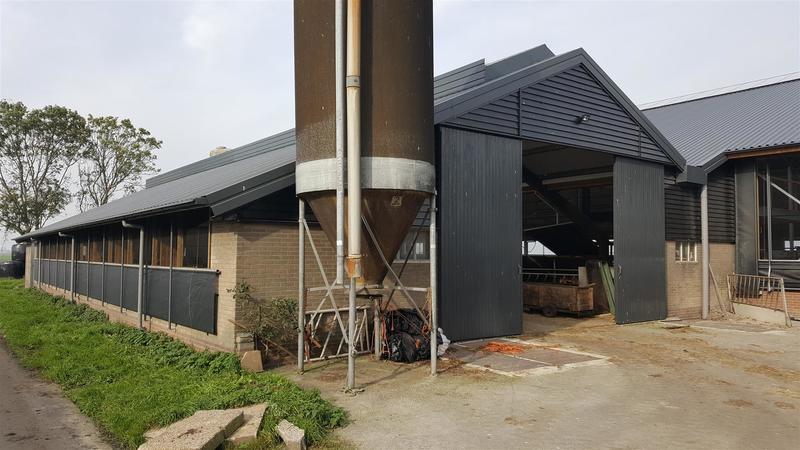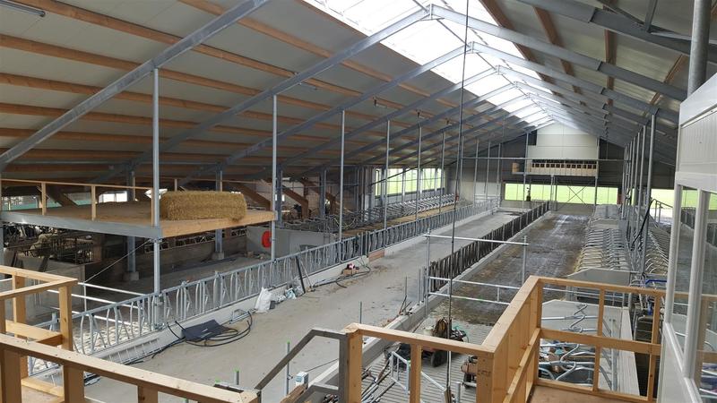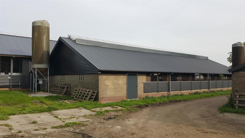De stal is op het achtererf gebouwd met een aansluiting tegen de zijkant van de bestaande jongveestal. Deze is tegelijk mee gerenoveerd zodat het totaal gebouw 1 fraai uiterlijk krijgt. De stal meet ca 28.5*63.5 m. Incl. alle nodige technische ruimtes biedt de stal ruimte aan ca 160 stuks melkvee en droge koeien. Welkwinning d.m.v. een Rapid exit melkstal 2×12 van deLaval. Hiernaast zijn er een aparte ruimtes / strohokken voor te separeren zorgdieren en afkalven. Voor de droge koeien is er een aparte extra ruimte ( 120 m2) strobox + afkalfstal op zand. Routing in de stal is geheel geoptimaliseerd. De stal heeft aan de voorzijde een schone looproute die in verbinding staat met de jongveestal. Aan de achterzijde van de bestaande jongveestal komt ook een doorbraak zodat de vaarzen heel eenvoudig bij de droge koeien kunnen worden geplaatst. Ruime strozolder boven strohok. Een ruime zolder aan voorgevel voorzien van kantoor met ramen rondom. Daarnaast nog ruimte voor watervaten en pallets boxstrooisel.